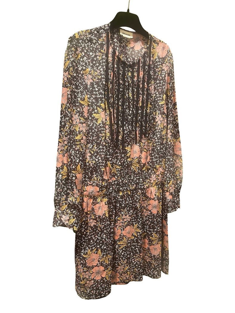 Zadig & Voltaire Seidenkleid – Braun, Rosa & Gelb mit Blumenmuster, Mini-Länge