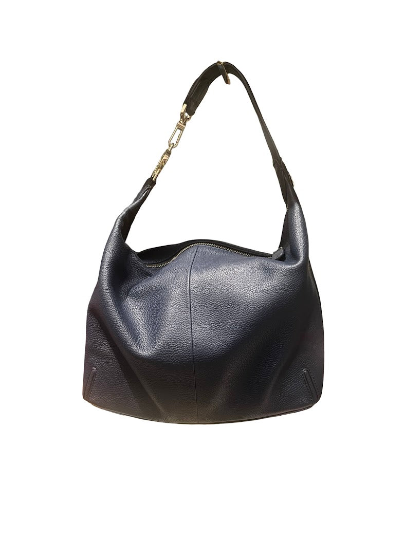 Aigner Beuteltasche aus gehämmertem Leder – Dunkelblau, Silberne Hardware, inkl. 2 Logo-Straps
