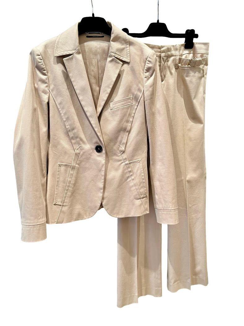 Dieser elegante Gucci Hosenanzug verbindet zeitlosen Chic mit hochwertiger Verarbeitung. Der Anzug in klassischem Beige besteht aus feiner Baumwolle und überzeugt durch seinen stilvollen, femininen Schnitt – ideal für Business, Events oder moderne Alltagslooks.